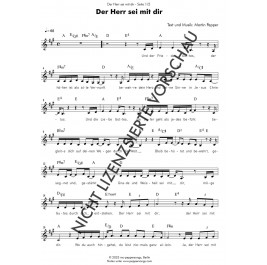 Liednoten des Aussendungslieder "Der Herr sei mit dir" von Martin Pepper aus dem Album "Flügelleicht